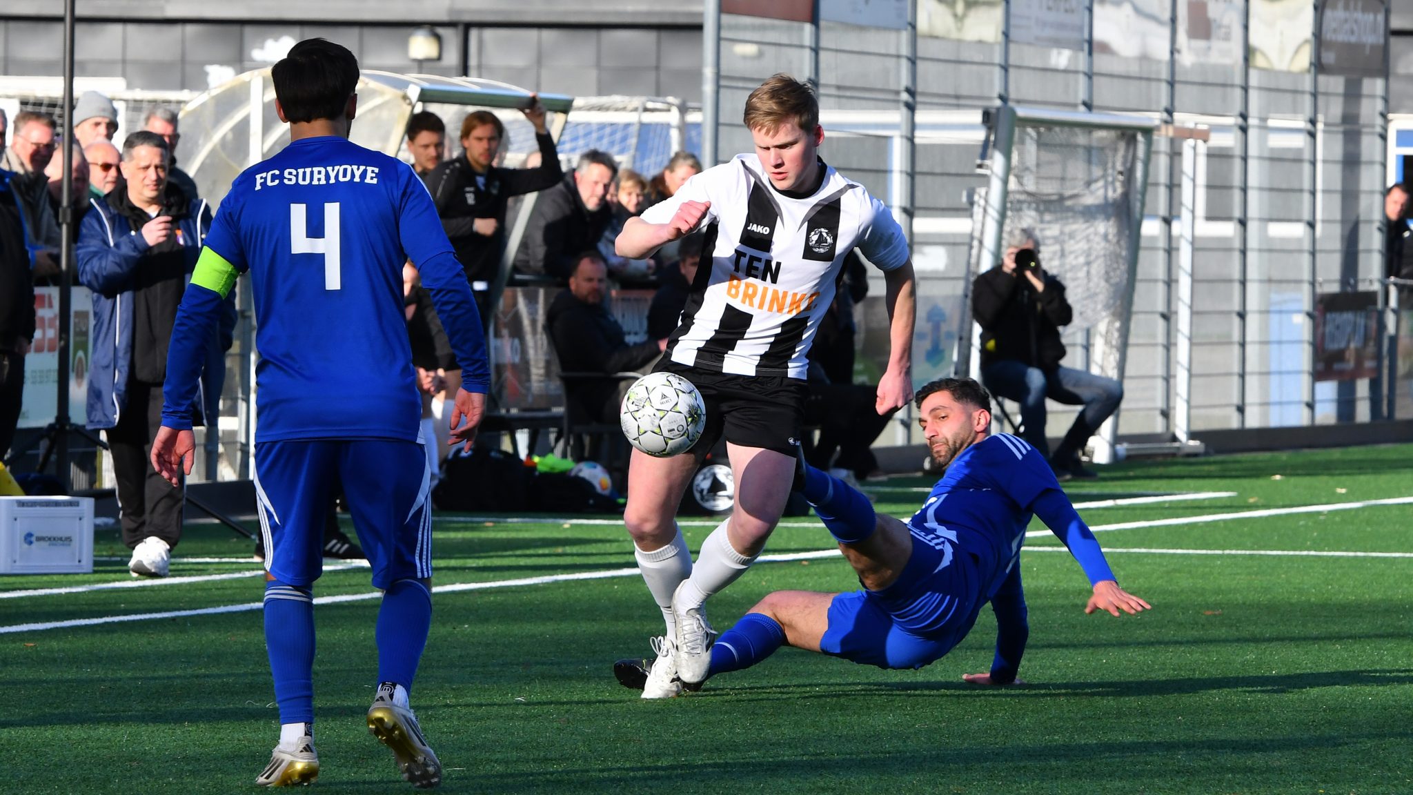 Beide ploegen konden overigens bogen op een lang ongeslagen competitie-optreden. De mannen uit Enschede gingen op 22 november van het afgelopen jaar voor het laatst de bietenbrug op en Enter Vooruit moest zelfs teruggaan tot zaterdag 26 oktober 2025, toen er nog eens een nederlaag geleden werd in competitieverband. Tegen de equipe van Suryoye-coach Benjamin Can was het vooral een niet bijster beste eerste helft die E.V. aan het eind van de rit opbrak. Mede doordat Woesthuis met lede ogen moest toezien dat er drie spelers uit de defensie zaterdag ontbraken, was het vooral onwennig en veel te weinig doortastend wat zwart-wit liet zien. Dat matige voetbal kwam overigens niet op het conto van de laatste linie, Menno Beuving, Rocco Eertink, Jessse Nijkamp en Bas Workel, want dat kwartet kweet zich in de nieuwe bezetting prima van haar taak, maar bij de gasten uit Enter zat het vooral in het vele aanvallende balverlies voor rust, plus daarbij een weinig resoluut optreden in de persoonlijke duels en in de uiteindelijke zone van de waarheid. E.V. blafte wel af en toe, maar beet niet.